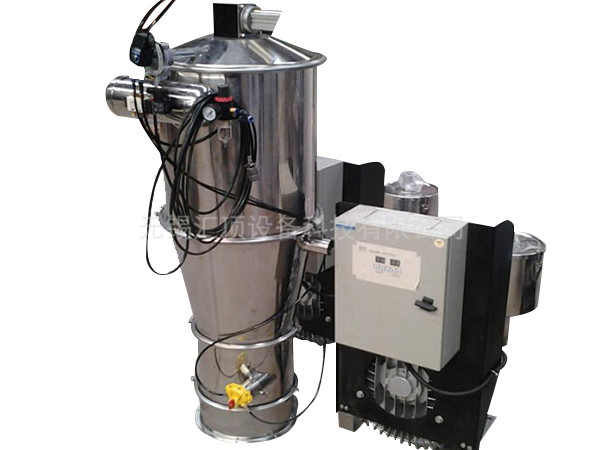 真空上料機是用旋渦氣泵抽氣,使吸料嘴進口處及整個系統處于一定的真空狀態,粉粒料隨同外界空氣被吸入料嘴,形成料氣流,經過吸料管到達料斗,在料斗中進行氣、料分離。分離后的物料進入受料設備。送料——放料是通過氣動三通閥不斷地開、閉來完成的,而氣動三通閥的開閉是由控制中心來控制的。