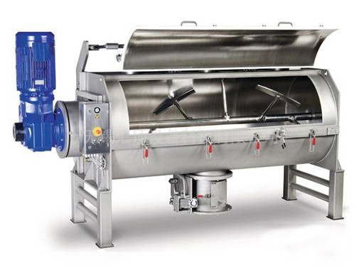 混合機(jī)啟動(dòng)后犁刀由犁刀軸帶動(dòng)旋轉(zhuǎn),使物料沿筒體徑向作周向湍動(dòng),同時(shí)把物料沿犁刀兩側(cè)面的法線方向拋出。當(dāng)被拋出和作周向湍動(dòng)的物料流經(jīng)飛刀組是時(shí),被高速旋轉(zhuǎn)的刀飛迅速、有力地拋散。物料在上述犁刀和飛刀的復(fù)合作用下,不斷擴(kuò)散、在短時(shí)間內(nèi)達(dá)到均勻混合,混合精度高。